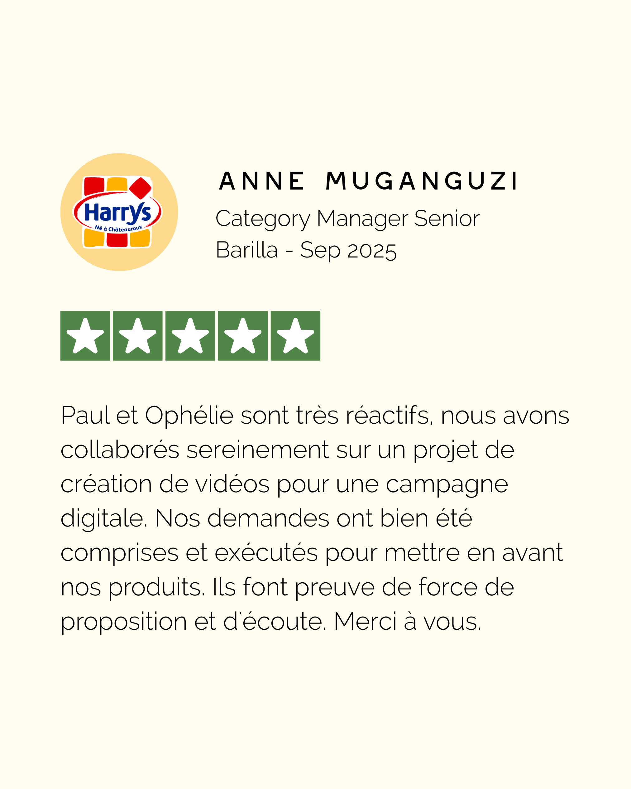 Vos interlocuteurs, Paul et Ophélie, sont aussi les créateurs de vos films : des concepts directement réalisables, un budget défini dès le départ et une parfaite cohérence entre l’intention créative et la production finale, avec moins d’allers-retours et de mauvaises surprises.